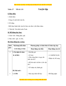 Tuần: 27 Tiết số: 131 Luyện tập I/ Mục tiêu: 1. Kiến thức: