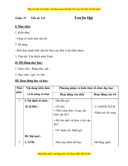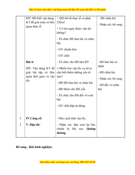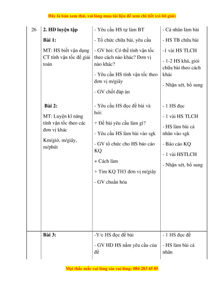 - Củng cố cách tính vận tốc. 2. Kĩ năng.