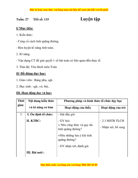- Củng cố cách tính quãng đường.