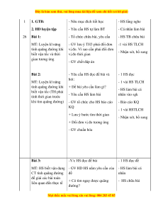 MT: HS biết vận dụng - GV HD HS nắm yêu cầu của - HS làm bài cá CT tính quãng đường đề nhân để giải các bài toán + Có tìm ngay đượ liên quan đế c quãng - HS chữa bài n thực tế đường?