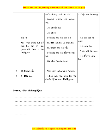 + Lưu ý bước tìm thời gian - Nhận xét, bổ sung