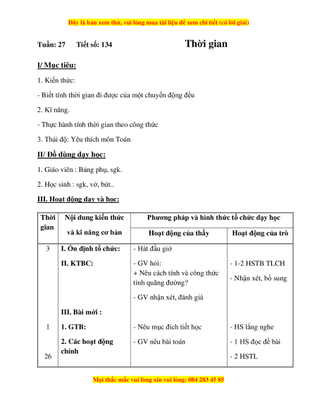 Giáo án Bài 134 Toán lớp 5: Thời gian