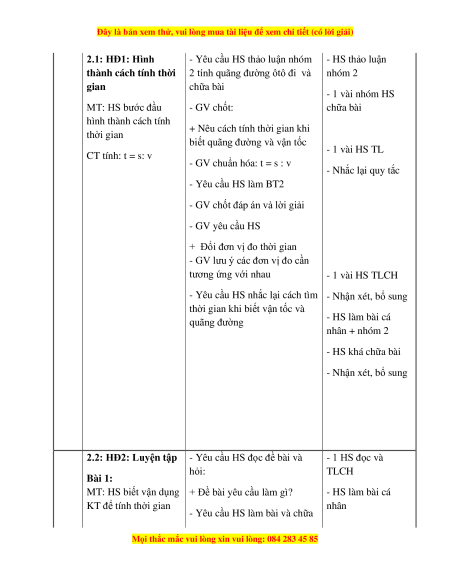 - Biết tính thời gian đi được của một chuyển động đều 2. Kĩ năng.
