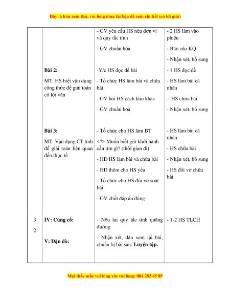 + Nêu cách tính và công thức tính quãng đườ - Nhận xét, bổ sung ng? - GV nhận xét, đánh giá III. Bài mới : 1 1. GTB: