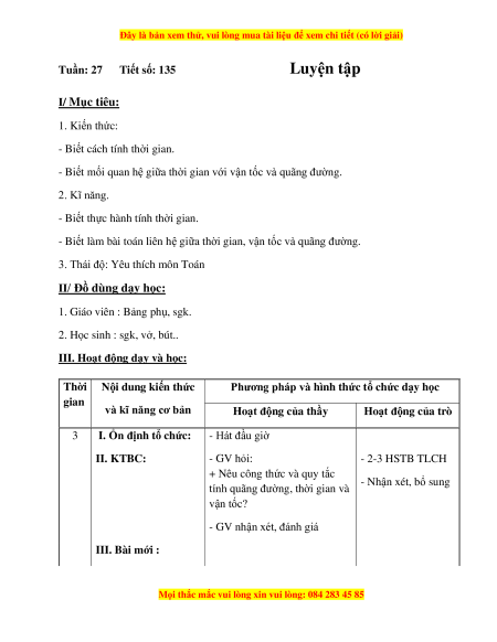 - Biết làm bài toán liên hệ giữa thời gian, vận tốc và quãng đường.