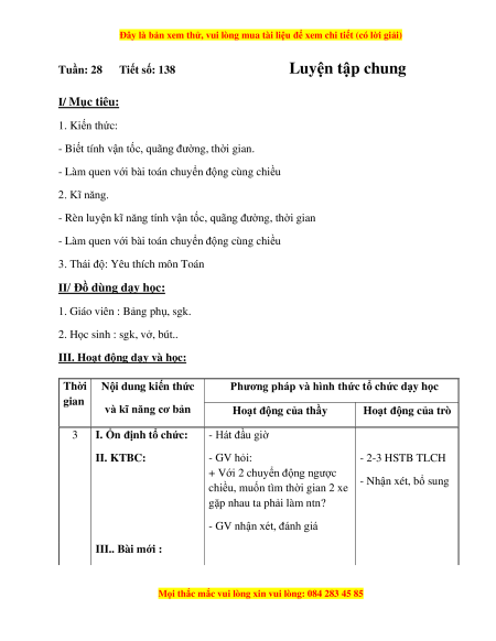 Tuần: 28 Tiết số: 138 Luyện tập chung I/ Mục tiêu: 1. Kiến thức: