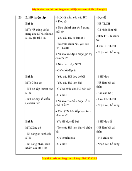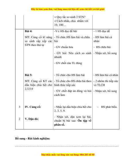 - Biết làm các bài tập về đọc, viết, so sánh các STN và dấu hiệu chia hết cho 2,3,,5,9.