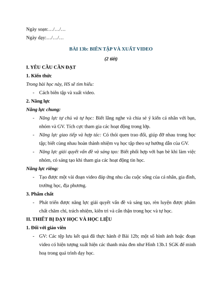Giáo án Bài 13b: Biên tập và xuất video Tin học 9 Kết nối tri thức