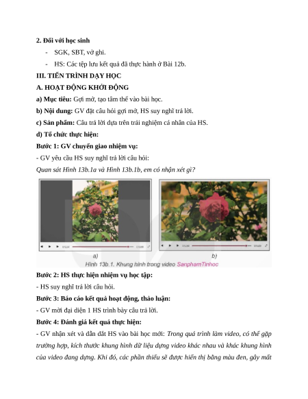 - GV: Các tệp lưu kết quả đã thực hành ở Bài 12b; một số hình ảnh hoặc đoạn
