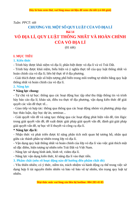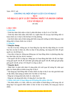 VỎ ĐỊA LÍ, QUY LUẬT THỐNG NHẤT VÀ HOÀN CHỈNH CỦA VỎ ĐỊA LÍ (01 tiết) I. MỤC TIÊU 1. Kiến thức