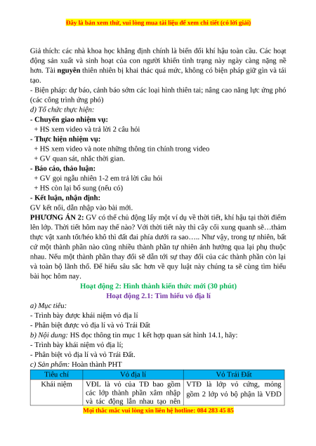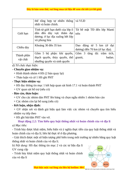 Hoạt động 2.1: Tìm hiểu vỏ địa lí a) Mục tiêu: