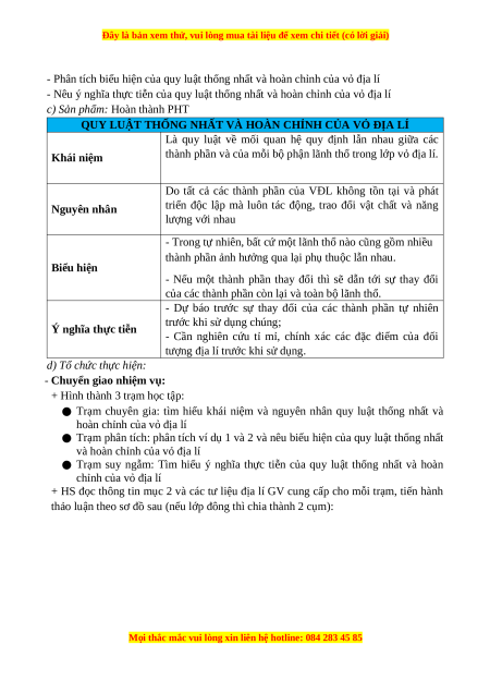 hoàn chỉnh của vỏ địa lí; liên hệ thực tế ở địa phương.