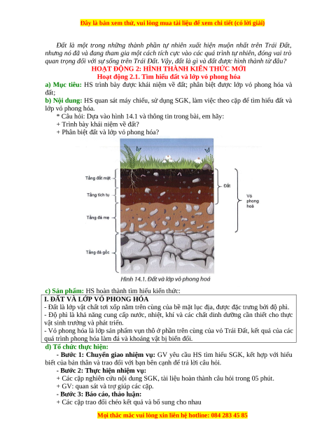 Hoạt động 2.1. Tìm hiểu đất và lớp vỏ phong hóa