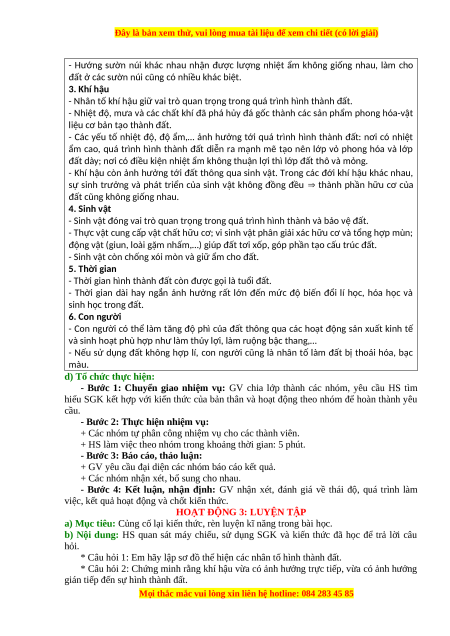 Hoạt động 2.2. Tìm hiểu các nhân tố hình thành đất
