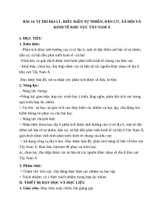 BÀI 14. VỊ TRÍ ĐỊA LÍ , ĐIỀU KIỆN TỰ NHIÊN, DÂN CƯ, XÃ HỘI VÀ
