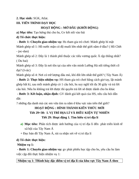 Tiết 29: Hoạt động 1. Tìm hiểu vị trí địa lí
