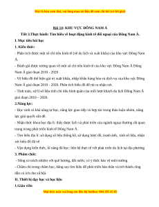 - Phân tích được một số chỉ tiêu kinh tế (về du lịch và xuất khẩu) của khu vực Đông Nam Á.