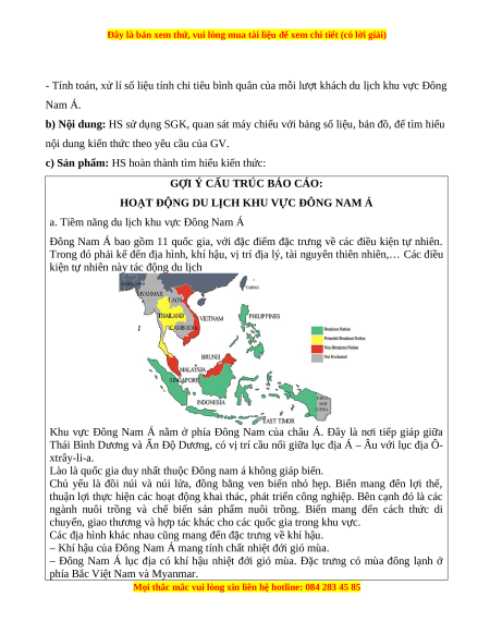 a) Mục tiêu: HS hiểu được tiềm năng du lịch khu vực Đông Nam Á.