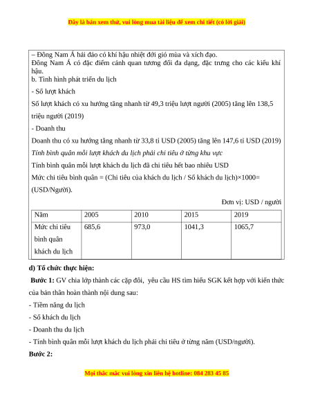 - Tính toán, xử lí số liệu tính chi tiêu bình quân của mỗi lượt khách du lịch khu vực Đông Nam Á.