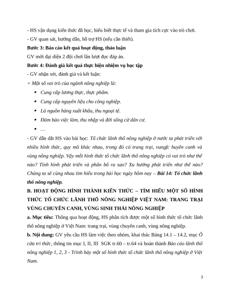 để tìm hiểu về hoạt động trang trại hoặc vùng chuyên canh nông nghiệp ở Việt Nam hiện nay. 3. Phẩm chất 1