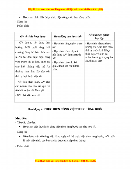 Học sinh nhận biết được thực hiện công việc theo từng bước. - Năng lực - Phẩm chất