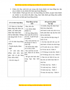 III. HOẠT ĐỘNG DẠY HỌC CHỦ YẾU