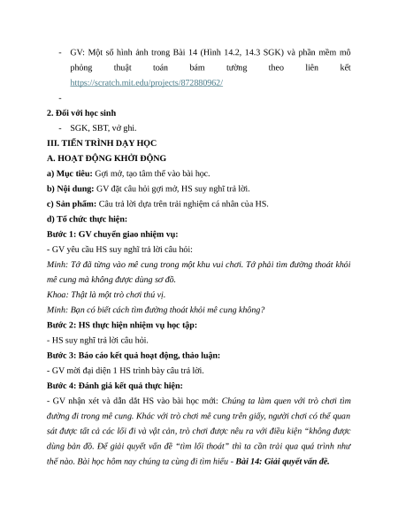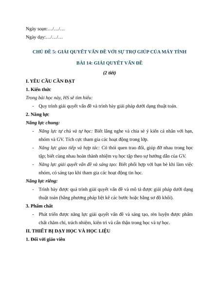 Giáo án Bài 14: Giải quyết vấn đề Tin học 9 Kết nối tri thức