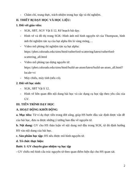 Giáo án Bài 14: Hạt nhân và mô hình nguyên tử Vật Lí 12 Chân trời sáng tạo