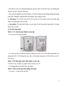 - Thực hiện được một số thí nghiệm của kim loại tác dụng với phi kim, acid (HCl, H2SO4), muối.