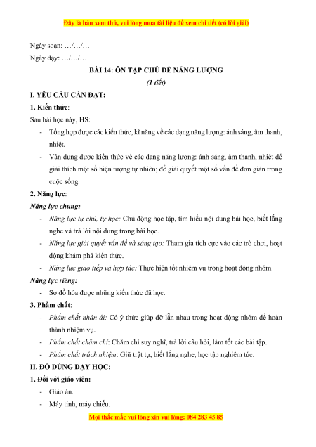 BÀI 14: ÔN TẬP CHỦ ĐỀ NĂNG LƯỢNG (1 tiết)