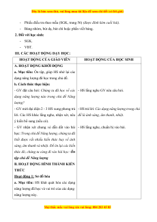 - GV nhận xét và kết luận: Mỗi dạng năng - HS lắng nghe, ghi chép.