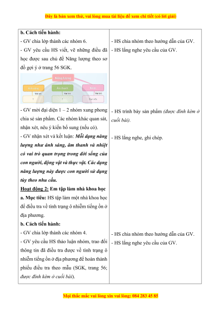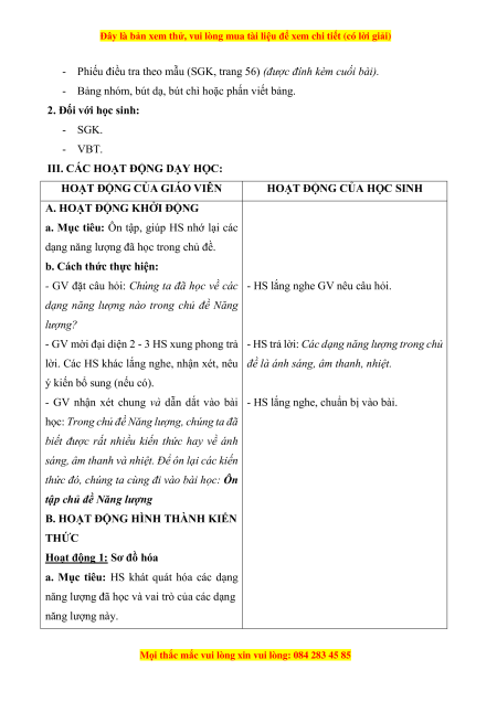 - Vận dụng được kiến thức về các dạng năng lượng: ánh sáng, âm thanh, nhiệt để