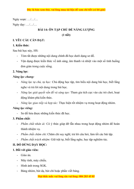 BÀI 14: ÔN TẬP CHỦ ĐỀ NĂNG LƯỢNG (1 tiết)