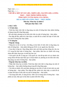 CHỦ ĐỀ 4: MỘT SỐ VẬT LIỆU, NHIÊN LIỆU, NGUYÊN LIỆU, LƯƠNG
