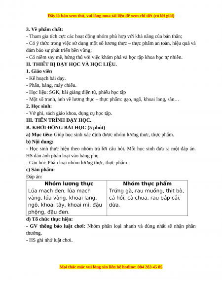 - Giúp học sinh nhận biết và kể tên được một số loại lương thực – thực phẩm phổ biến ở Việt Nam.