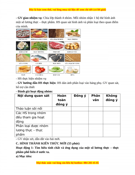 a) Mục tiêu: Giúp học sinh xác định được nhóm lương thực, thực phẩm. b) Nội dung: