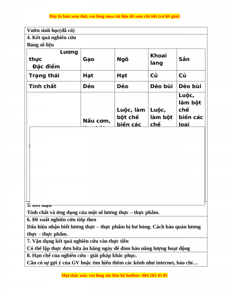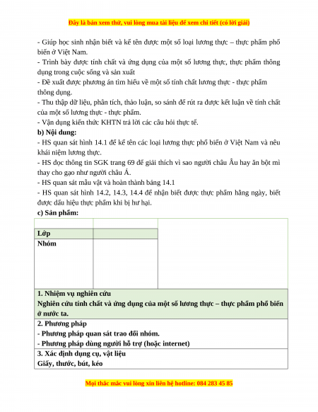 - Đề xuất được phương án tìm hiểu tính chất của một số lương thực - thực phẩm.