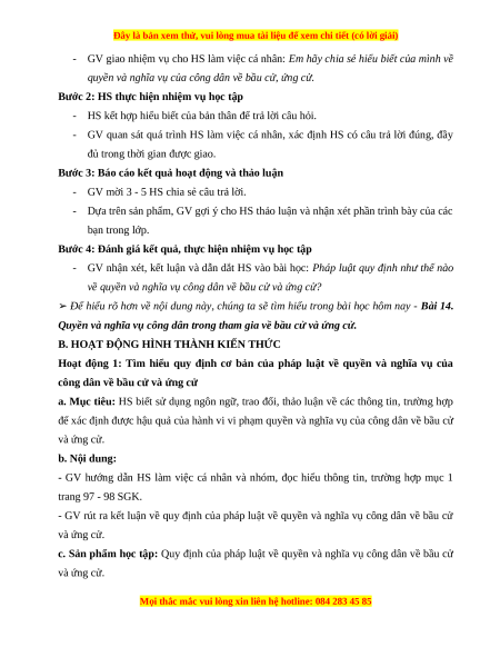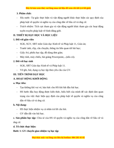 Giáo án Bài 14 KTPL 11 Cánh diều: Quyền và nghĩa vụ công dân về bầu cử và ứng cử
