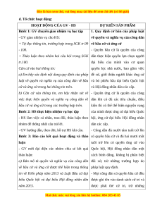 - GV mời đại diện các nhóm chia sẻ kết quả Quốc hội, Hội đồng nhân dân một thảo luận: