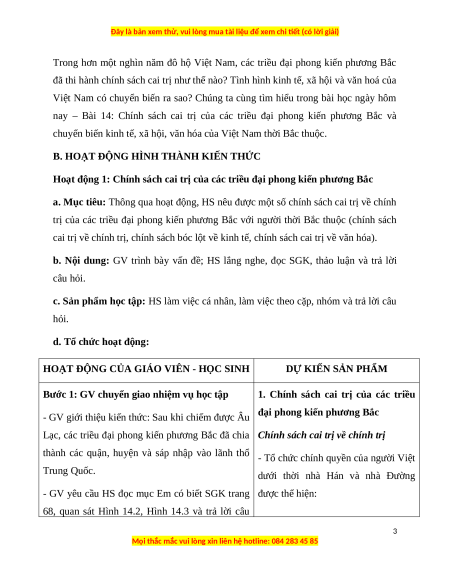 Giáo án Bài 14 Lịch sử 6 Cánh diều (2024): Chính sách cai trị của các triều đại phong kiến