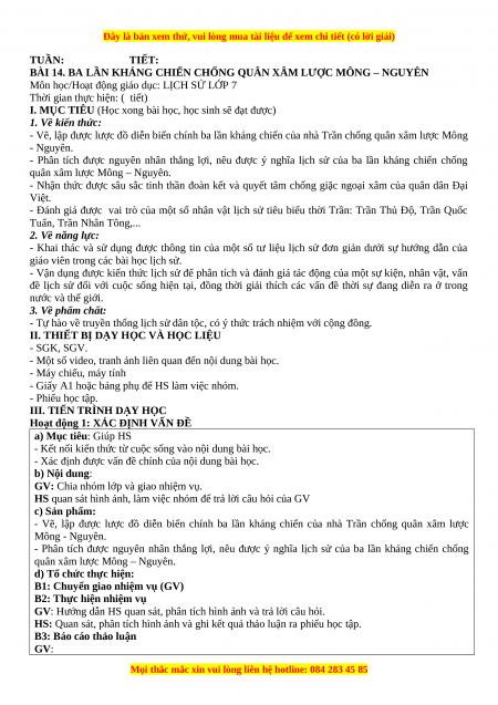 Giáo án Bài 14 Lịch sử 7 Kết nối tri thức (2024): Ba lần kháng chiến chống quân xâm lược Mông - Nguyên