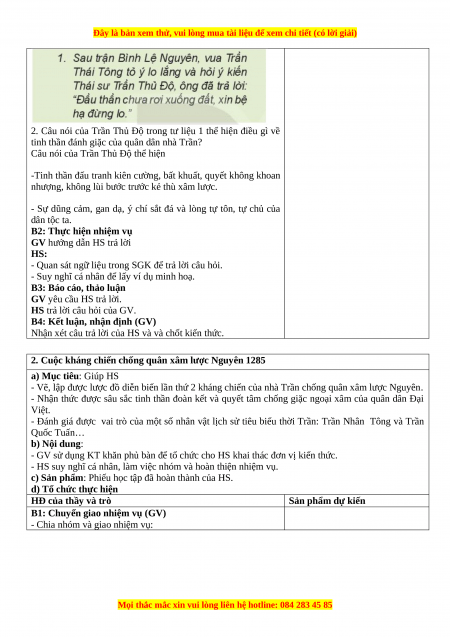 - Đánh giá được vai trò của một số nhân vật lịch sử tiêu biểu thời Trần: Trần Nhân Tông và Trần Quốc Tuấn… b) Nội dung: