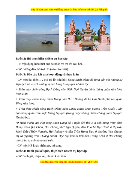 b. Nội dung: GV cho HS quan sát hình ảnh về dòng sông Bạch Đằng, Khu di tích