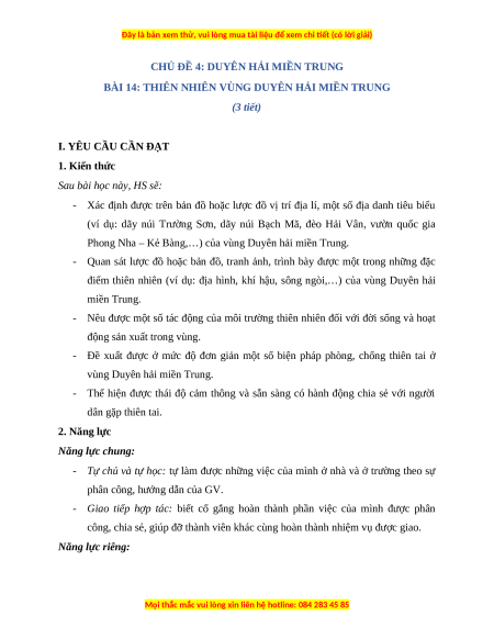 BÀI 14: THIÊN NHIÊN VÙNG DUYÊN HẢI MIỀN TRUNG (3 tiết)