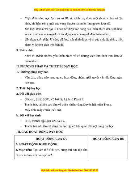 Giáo án Bài 14 Lịch sử & Địa lí lớp 4 Chân trời sáng tạo: Thiên nhiên vùng duyên hải miền Trung