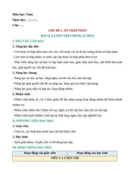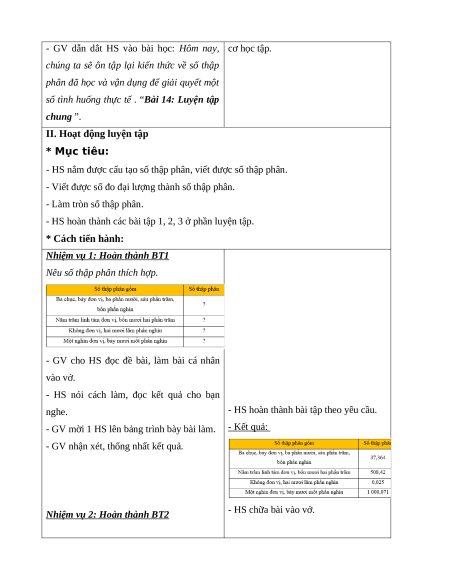Giáo án Bài 14: Luyện tập chung Toán lớp 5 Kết nối tri thức