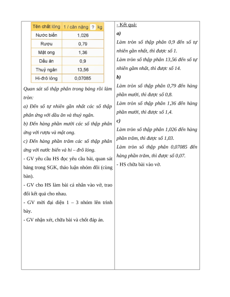 - Làm tròn số thập phân; so sánh, sắp xếp được số thập phân theo tứ tự.