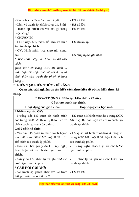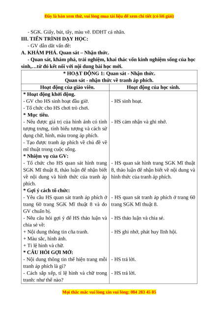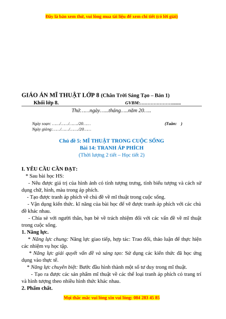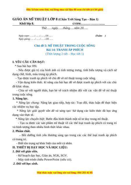 GIÁO ÁN MĨ THUẬT LỚP 8 (Chân Trời Sáng Tạo – Bản 1)