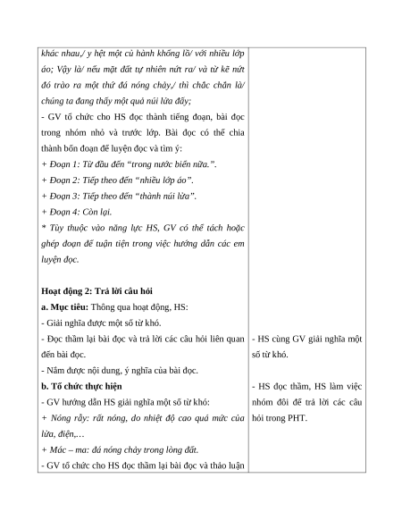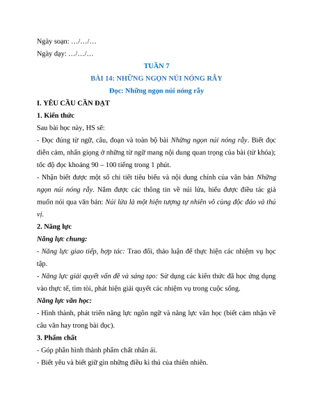 Giáo án Bài 14: Những ngọn núi nóng rẫy Tiếng Việt lớp 5 Kết nối tri thức