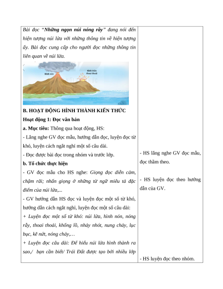 + Luyện đọc một số từ khó: núi lửa, hình nón, nóng